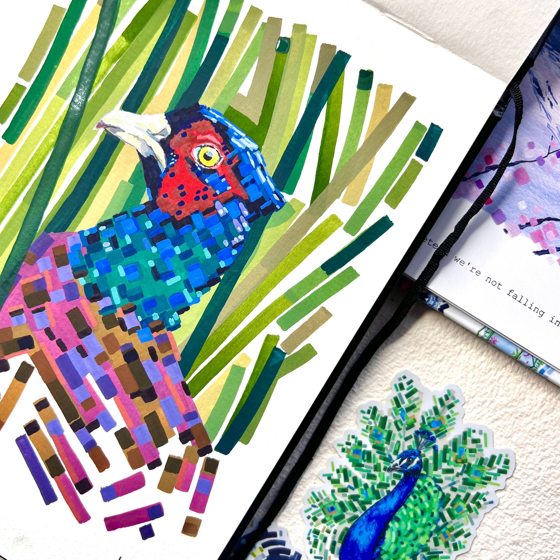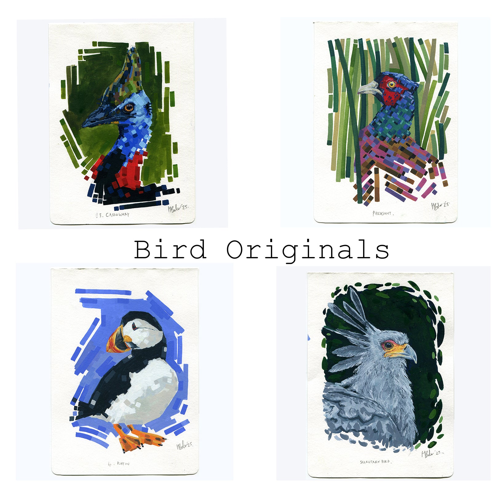 Unframed Gouache bird original paintings on 250gsm smooth watercolour paper.
