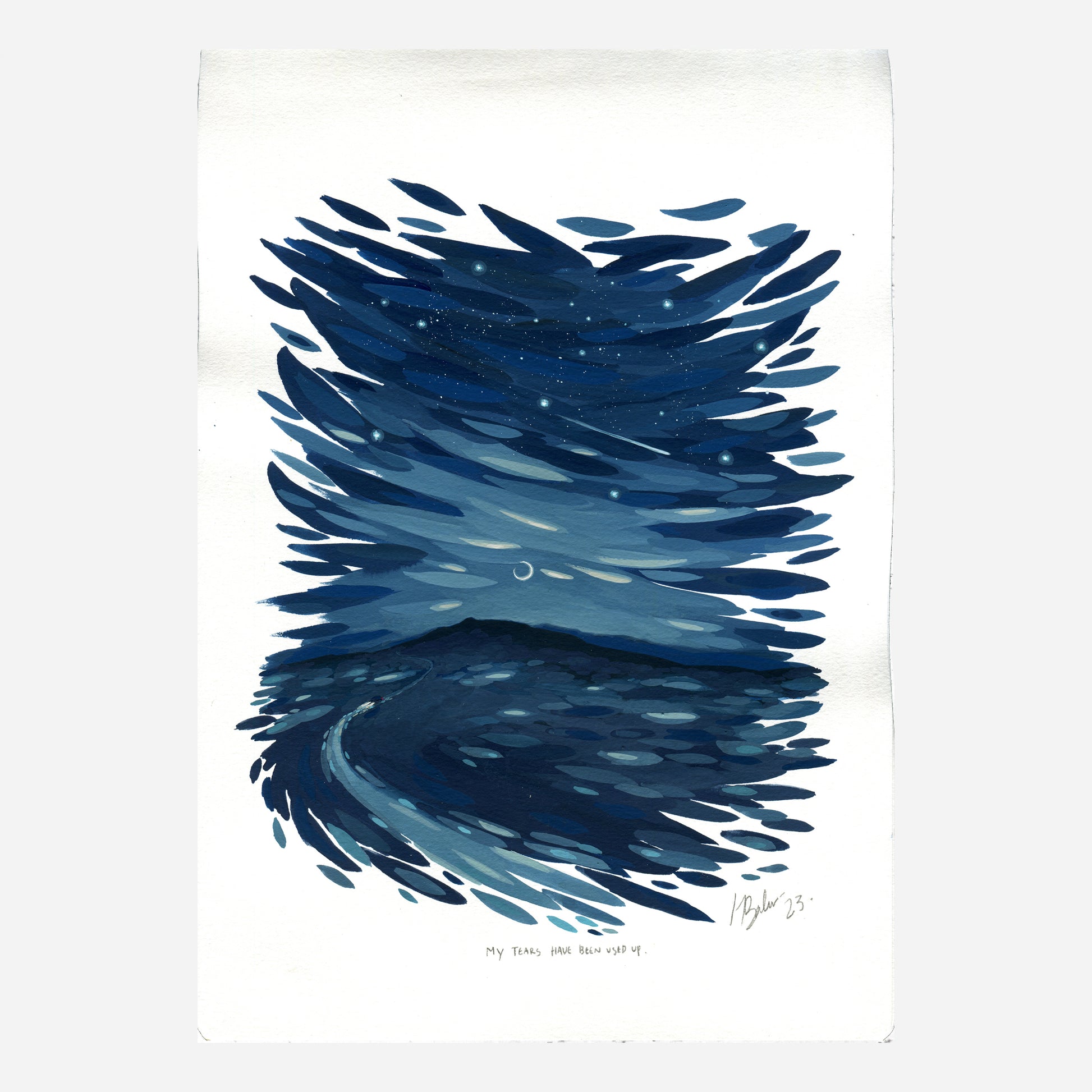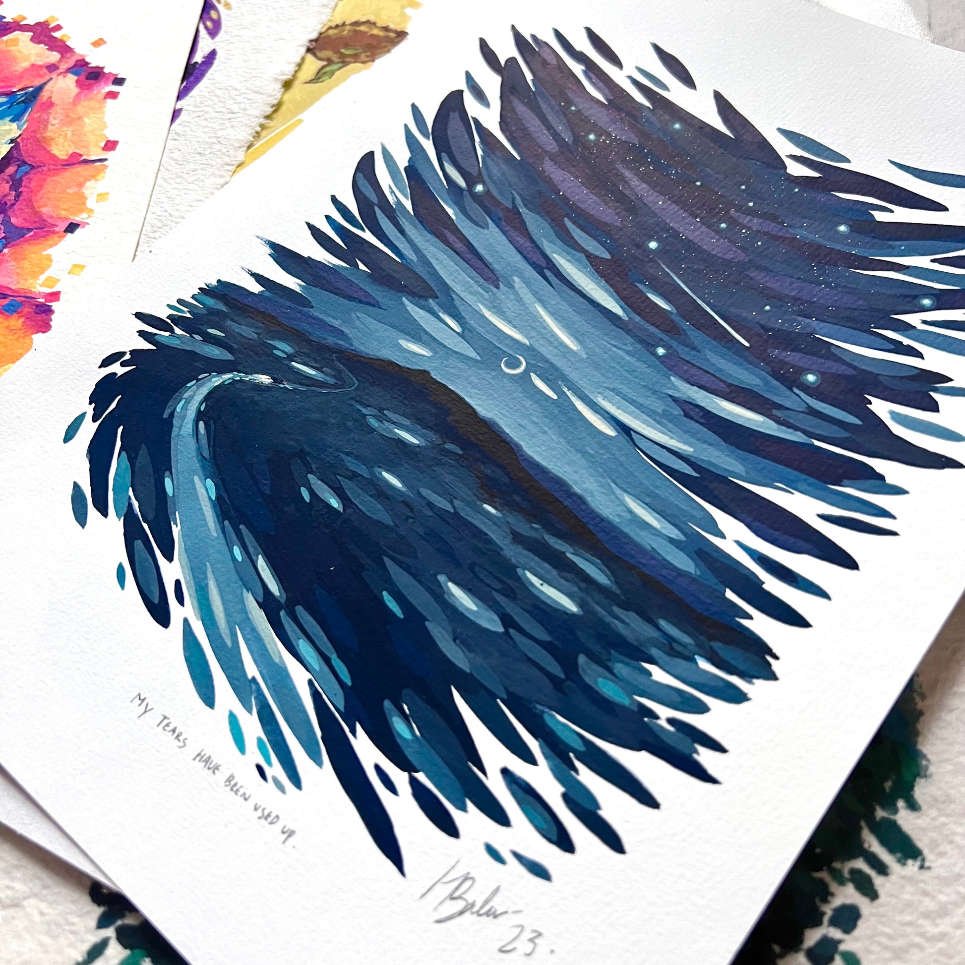 Unframed Gouache original of "My tears have been used up" (2023) on 250gsm watercolour paper.