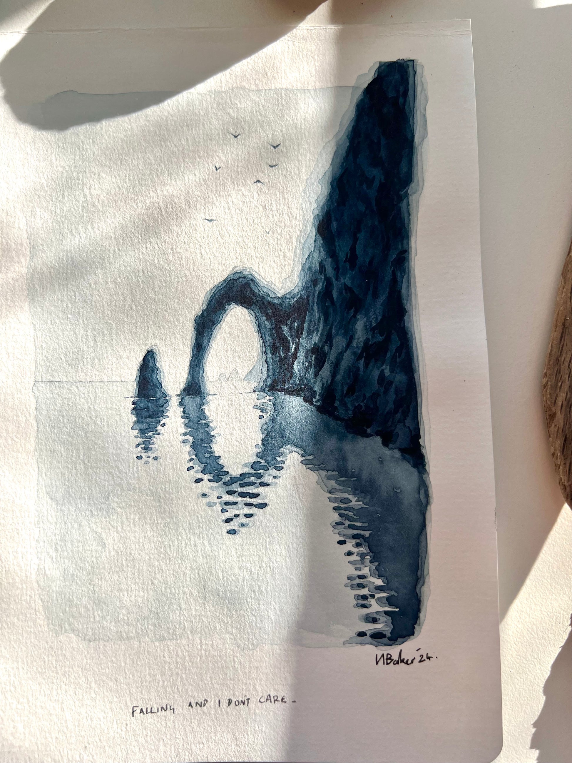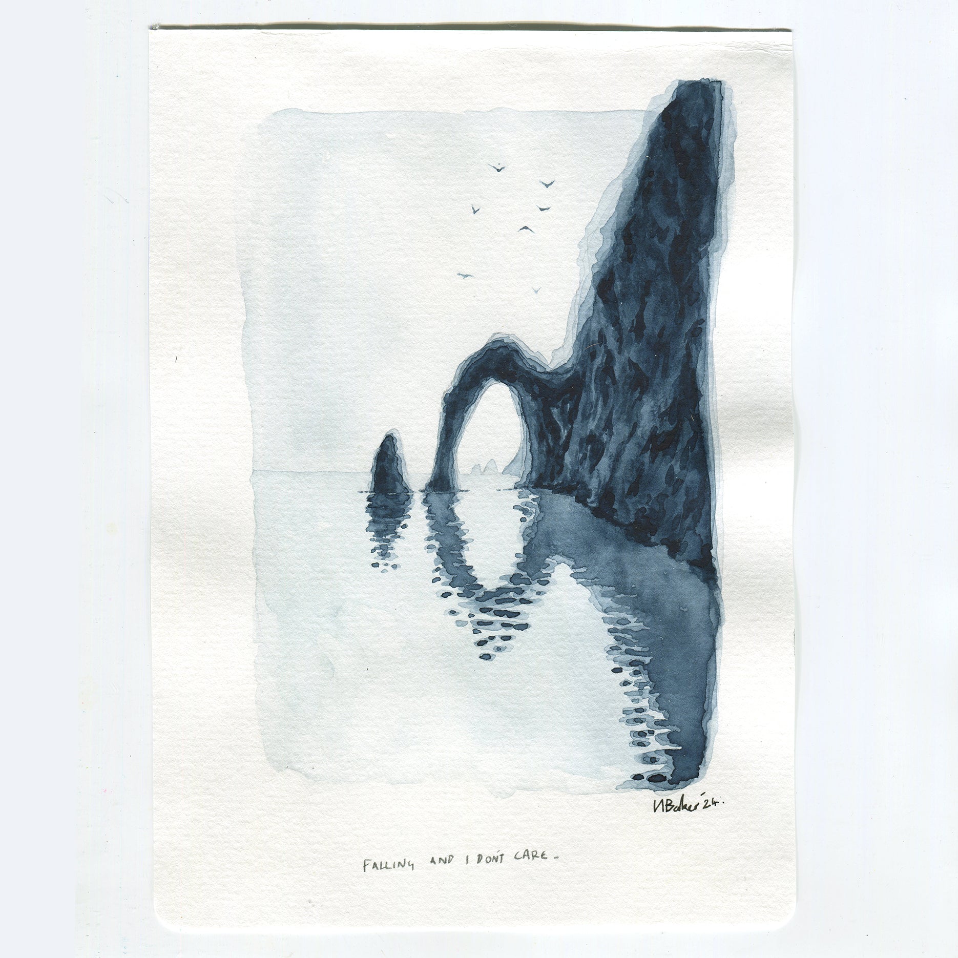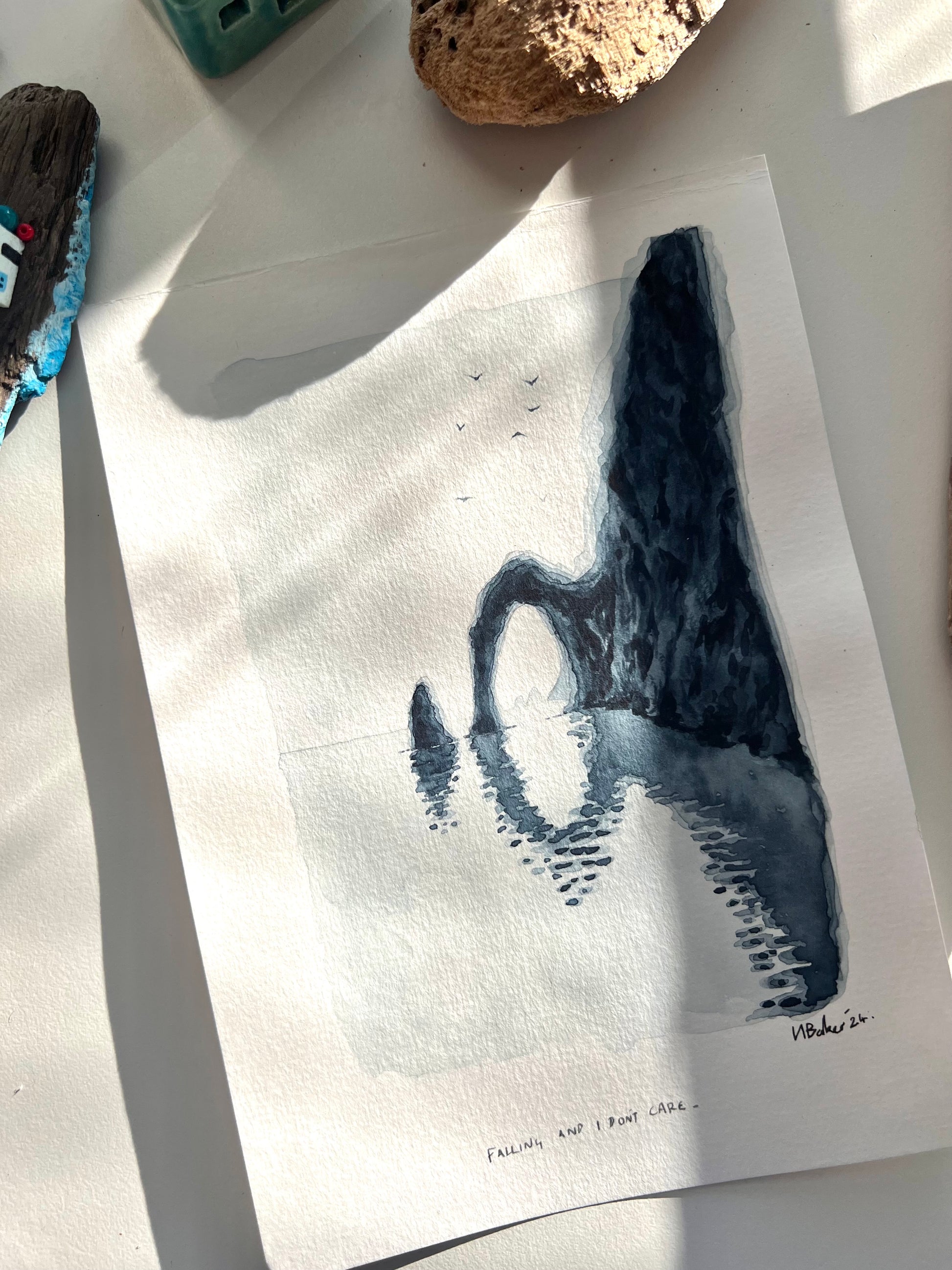 Gouache original painting of "Falling and I don't care" (2024) on 220gsm smooth watercolour paper.