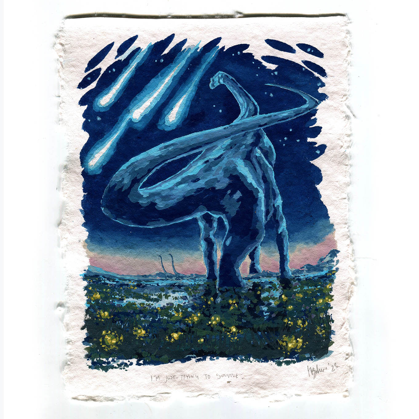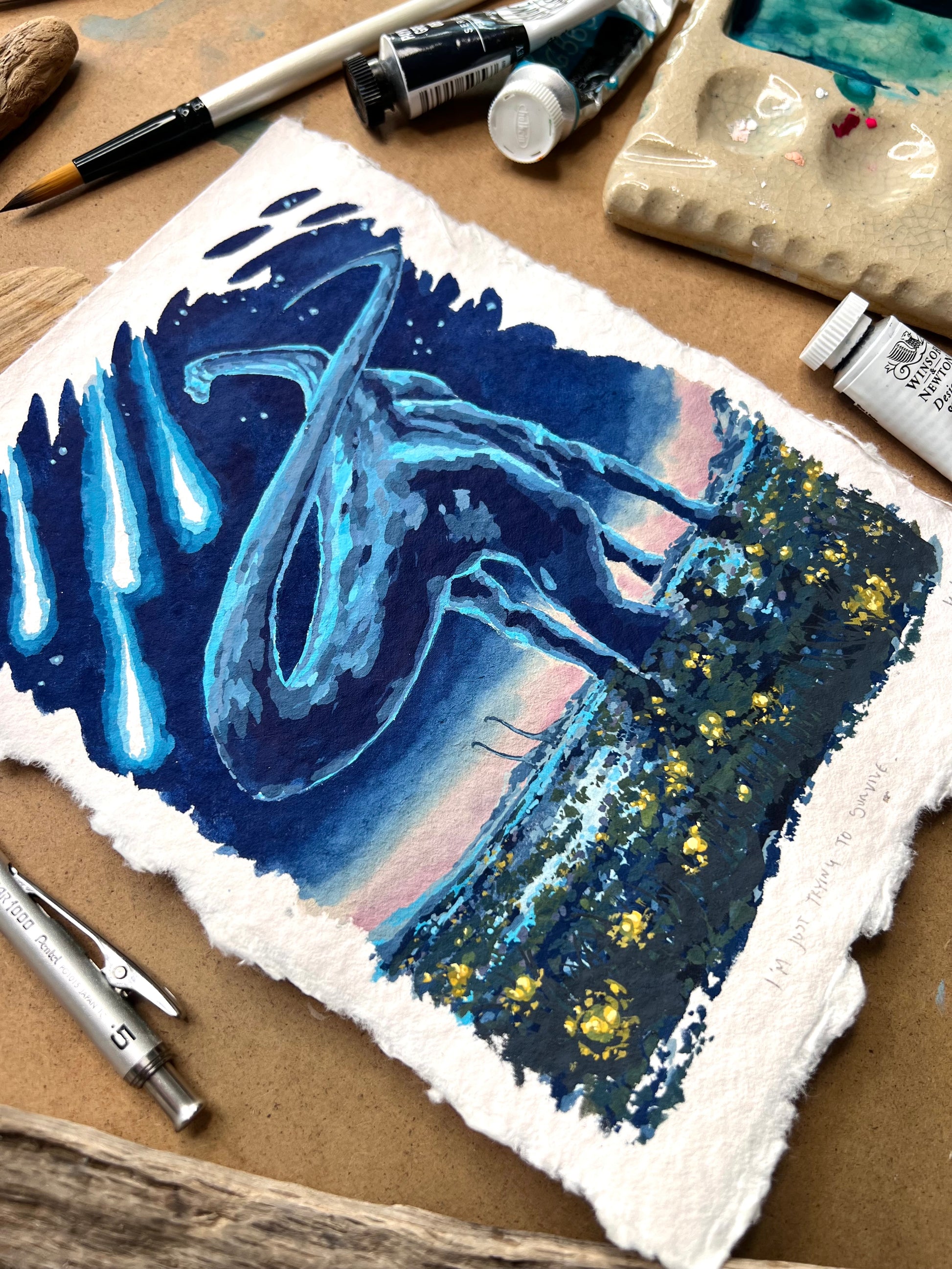 Unframed Gouache original painting "I'm just trying to survive" on 300gsm textured watercolour paper.